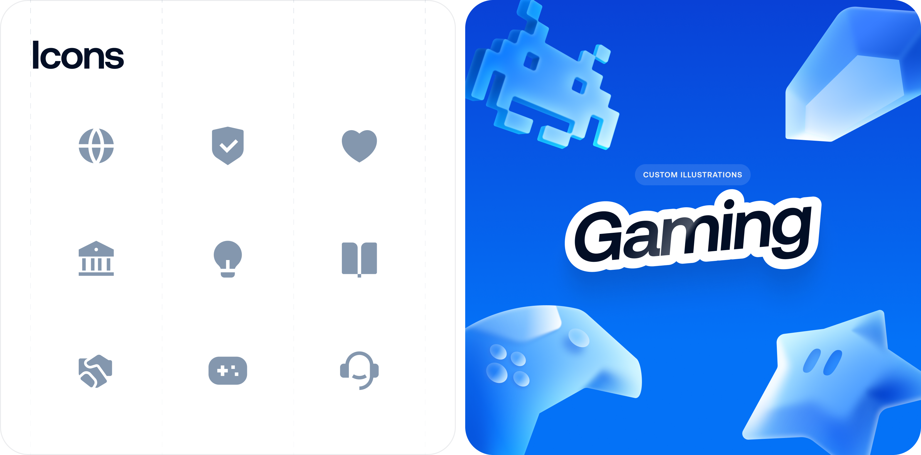 The icons, in contrast, stay flat and crisp — pixel-tight geometry, clean strokes, and a minimal visual footprint.